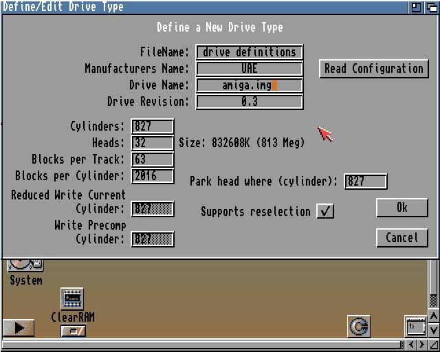 Do skonfigurowanej Amigi podpiąłem moje .img jako dysk1, dodałem w ustawieniach: