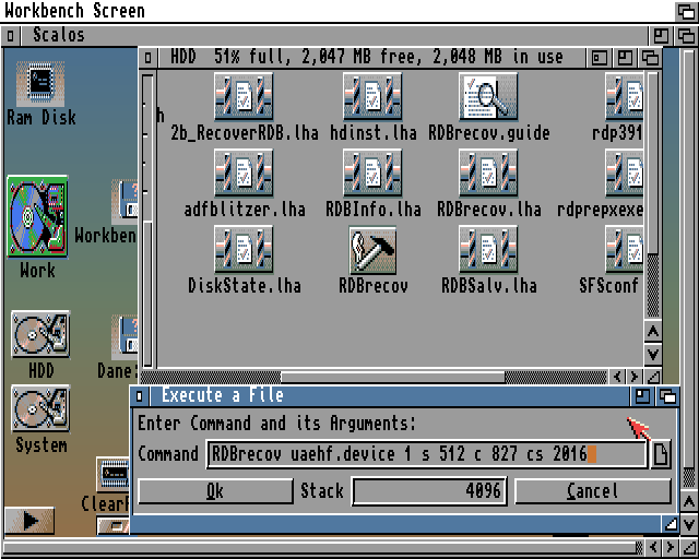 Nic to – najważniejsze dane odzyskane – więc szybciorem zrobiłem kopię pliku .img już z dobrymi dwiema partycjami. Potem było trochę walki z różnymi programami ratującymi, ale żaden nie dawał rady odzyskać partycji Workbench. Dałem sobie spokój na dwa dni.