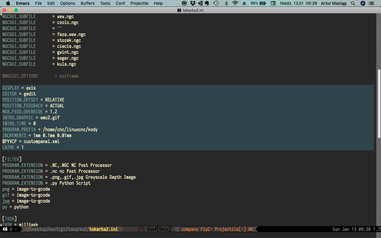 Mam tak sformatowany tekst – najczęściej to jakieś pliki konfiguracyjne są – tu wycinek z konfiguracji LinuxCNC:
