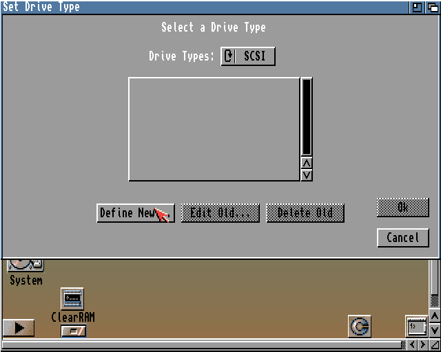 Tu nie widać żadnych typów napędów, daję więc Define New...