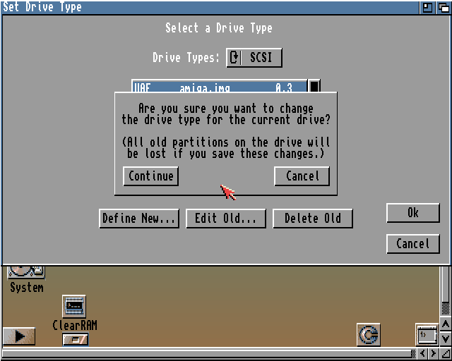 Do skonfigurowanej Amigi podpiąłem moje .img jako dysk1, dodałem w ustawieniach: