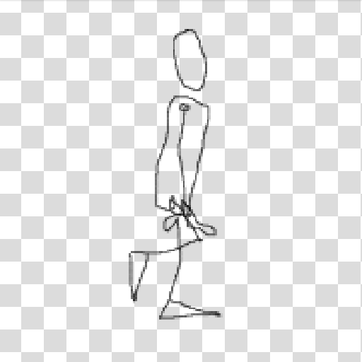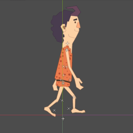 No to potem stwierdziłem, że oszukam 'kości' - zrobię animację w Kricie obracając warstwy i wyeksportuję to jako poszczególne klatki. Szybki szkic chodu wyszedł całkiem przyzwoicie: